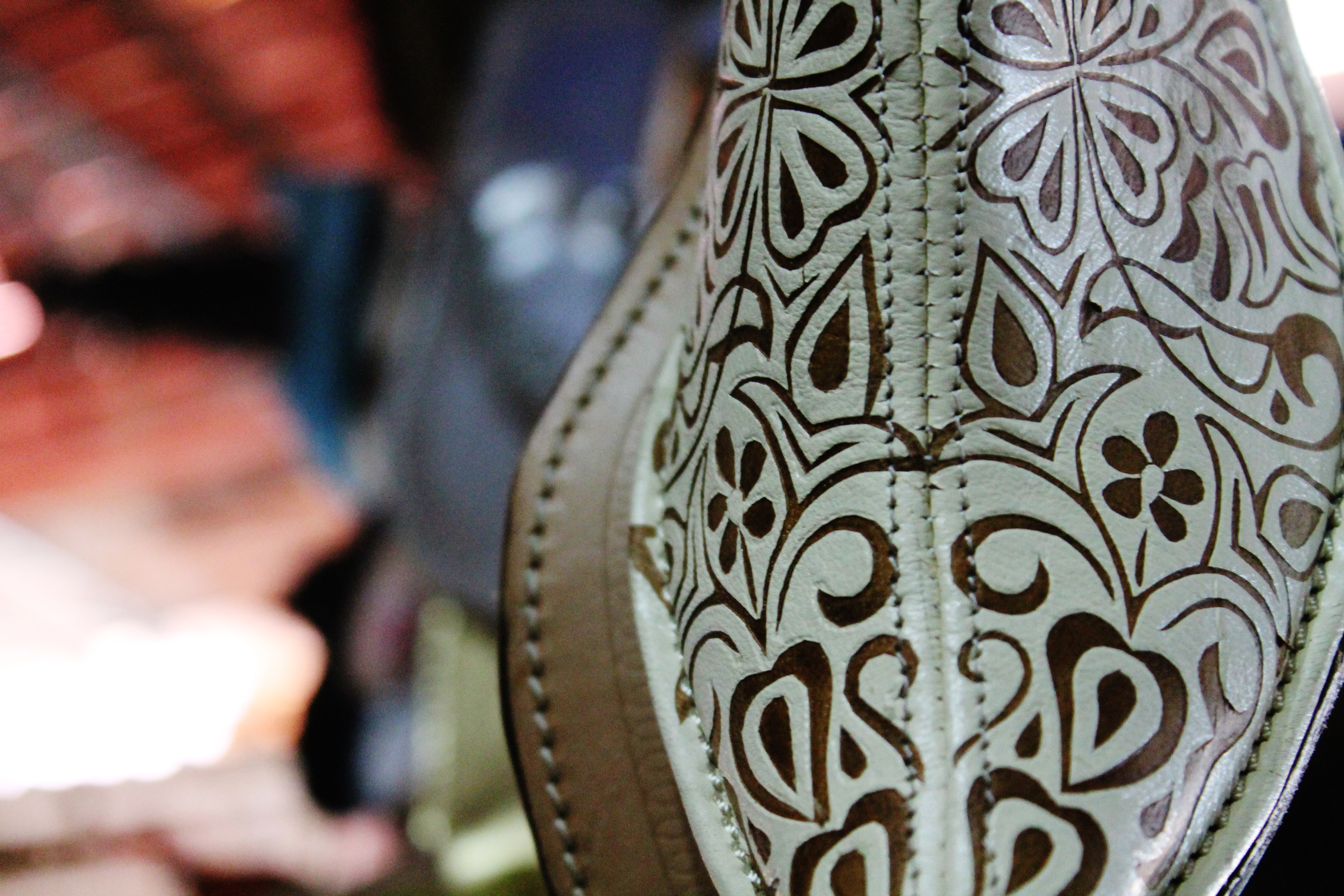 Kůže telecí, hovězí i ovčí, které jsou tak nezbytné pro vytvoření kvalitních babušek, se tady opracovávají už po staletí tradičně. Chemikálie na jejich činění obsahují již výše zmíněný holubí trus a jejich barvení se provádí v kádích ručně, za pomoci přírodních barviv. Žlutá kabelka je tedy žlutou díky kurkumě a modré kozačky jsou zase modré díky indigu.