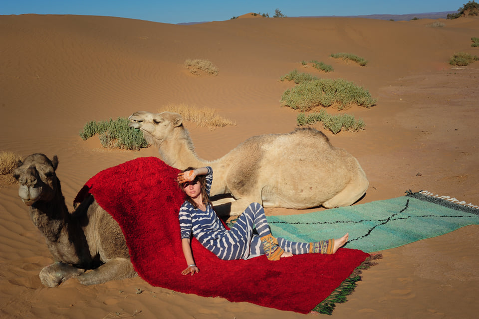 Sedela som tam hodiny a zjednávala pri mätovom čaji. Treba povedať, že kvôli cestovnej horúčke som posledné tri dni a tri noci skoro nič nezjedla a nespala, takže tu som už mlela z posledného. Nič, išli sme sa na to vyspať a na druhý deň ráno sme sa vrátili, ja som kúpila tri nádherné koberce a spokojná a švorc som pokračovala s mojimi marockými spoločníkmi v ceste na juh, kde sme ich v púšti nafotili. Prvé košíky sa u nás ani neohriali, a to sme nemali ešte ani webstránku! Odvtedy prešiel nejaký čas, a postupne naše portfólio rozširujeme aj o ďalšie produkty – sú súčasťou našej najnovšej objednávky a teraz už nedočkavo očakávame ich príchod!